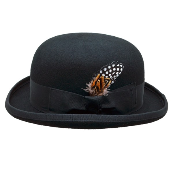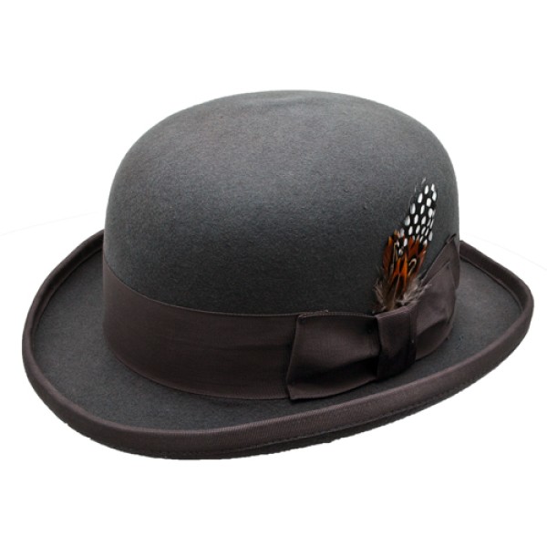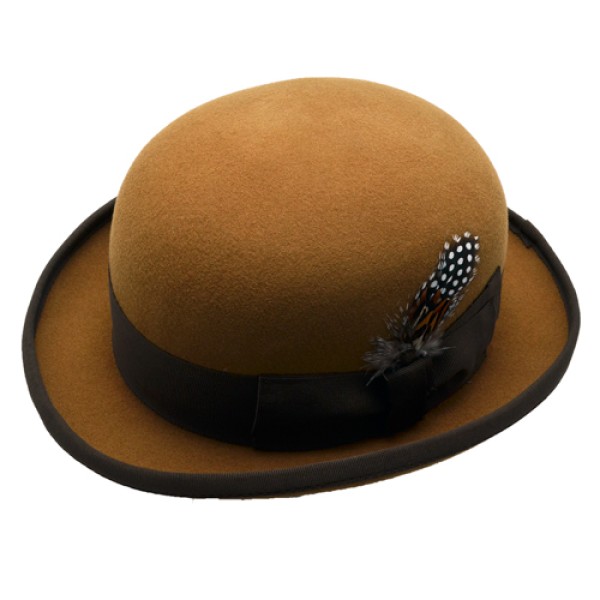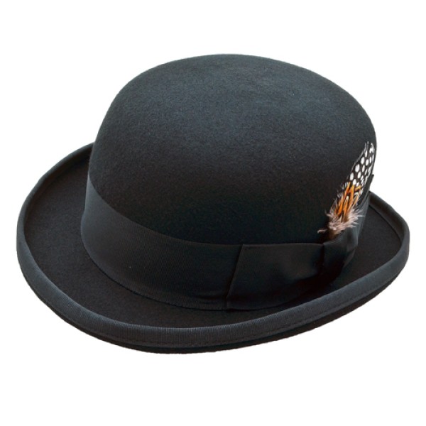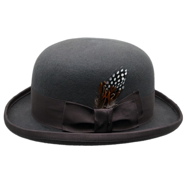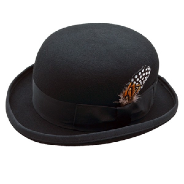 Whether you're showing off your own style or imitating a classic, like Charlie Chaplin, this Chaplin Hat is a classic. Available in black, this derby hat has an open crown and a 2" rolled bound edge brim. Let's not forget the 1 ¾" grosgrain bow band to top it off. This is a top-quality wool hat with a great price. Read more