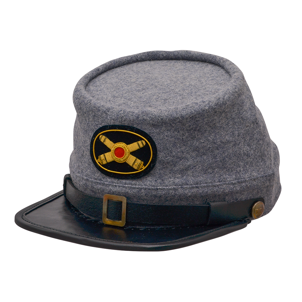 Note: Our famous kepi is handmade with the best materials. Durable wool, heavy leather brim, brass side buttons and center buckle, leather sweat band and they are lined with cotton material. This men's civil war cap is perfect for the civil war enthusiast and for reenactment events