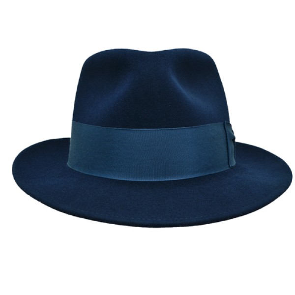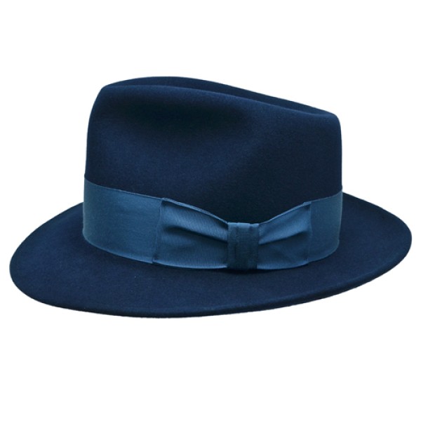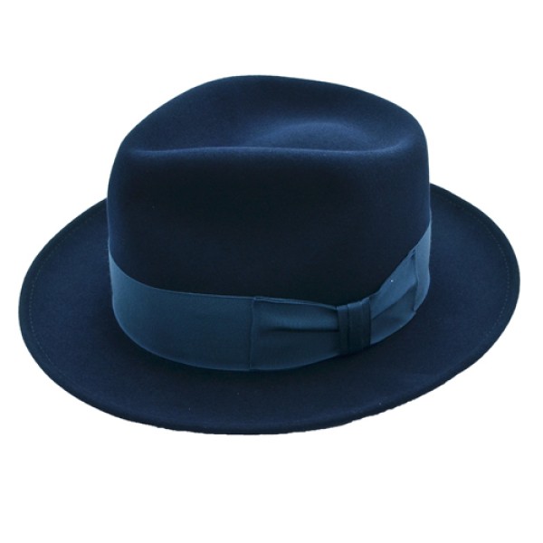 The Frank Sinatra Hat is made of a smooth finish Merino Wool felt material, this Sinatra hat is a very close replica of the same hat Frank Sinatra wore. This fedora hat is available in a variety of different brim sizes, and available in a variety of colors: black, gray, brown, and navy. The Sinatra hat has a tight 4 3/8” pinch teardrop crown similar to what Frank Sinatra wore. Let’s not forget the 1 5/8” grosgrain bow band to top it off. This is a quality hat with a great price. Click here to learn more about Frank Sinatra hats.