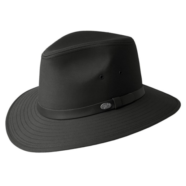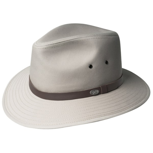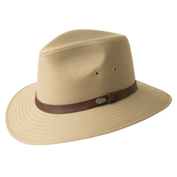 The Dalton is the classic Safari centerdent Crown with a Turndown Brim. It is constructed out of a water resistant poplin fabric, trimmed with a leather band, and fully lined with a Comfort Sweatband