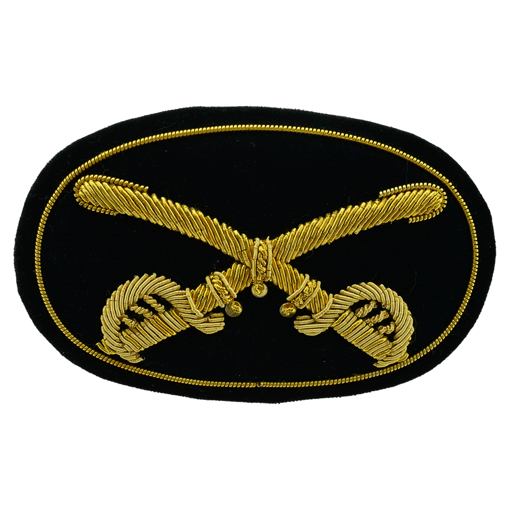 Price includes Crossed saber cavalry officers embroidered hat badge (595). The material of the badge is gold embroidered on black wool.